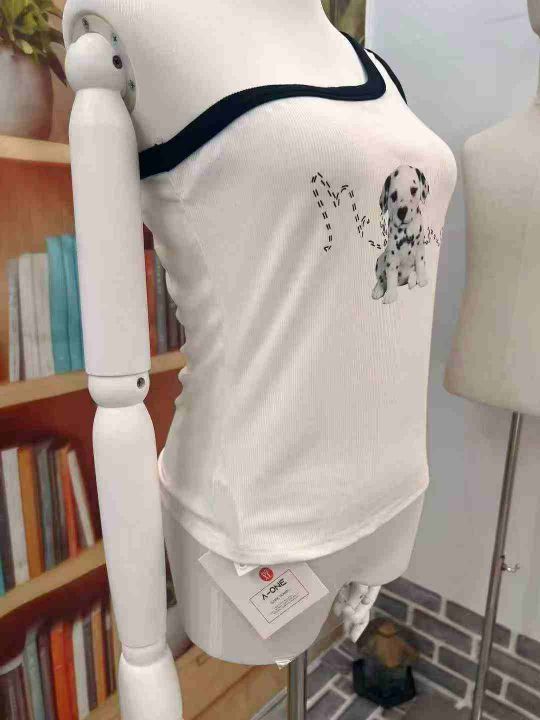 66件小奶狗印花斜肩辣妹吊带,独立包装带吊牌,码数S-XL,品质可入实体店!