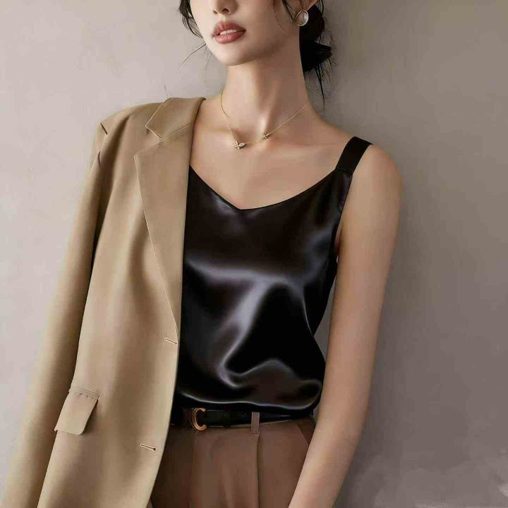 全清价4.6元夏季时尚百搭V领吊带背心外穿真丝缎面内搭打底,独立包装,整款...
