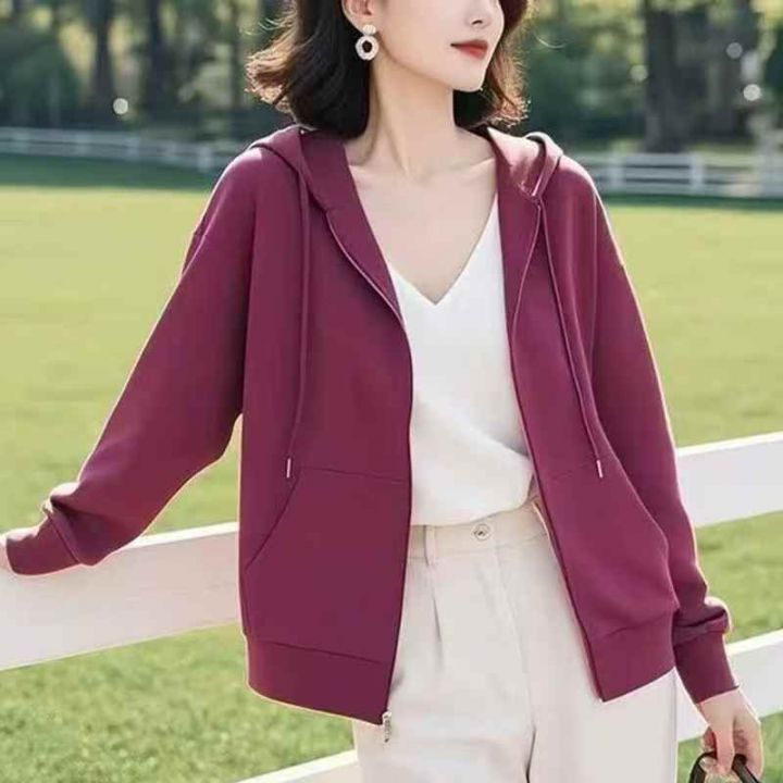 休闲连帽卫衣外套女2025春秋新款开衫上衣,1到6码,图...