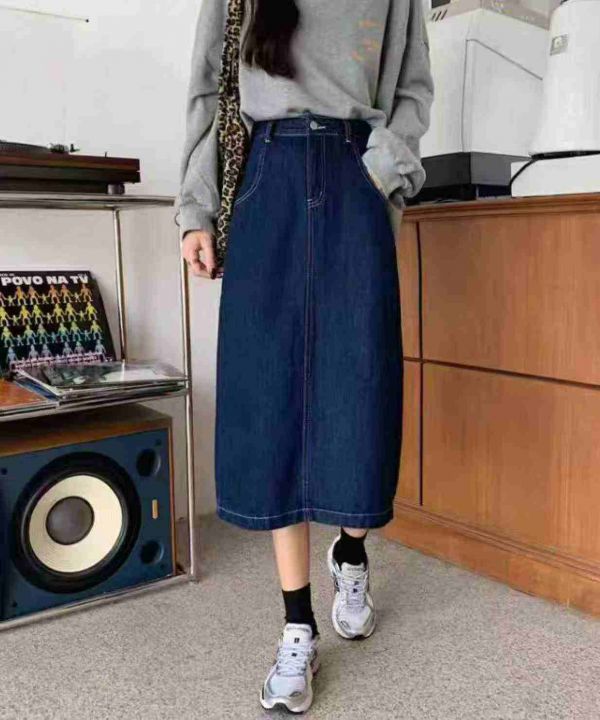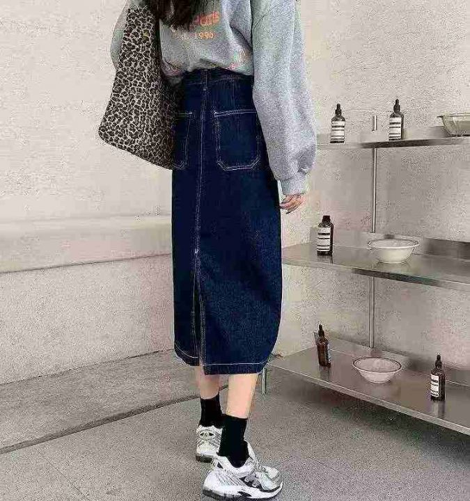 捡漏款,春夏季新款网红复古蓝高弹力牛仔半身长裙,独...