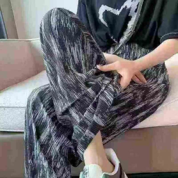 全清价6.9元冰凉感直筒冰丝阔腿裤女夏季薄款休闲防蚊显瘦垂感扎染裤子,独...