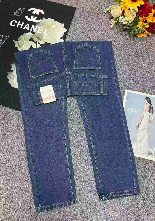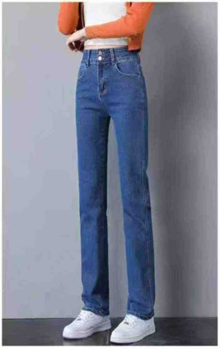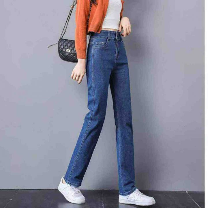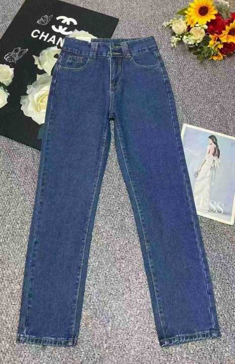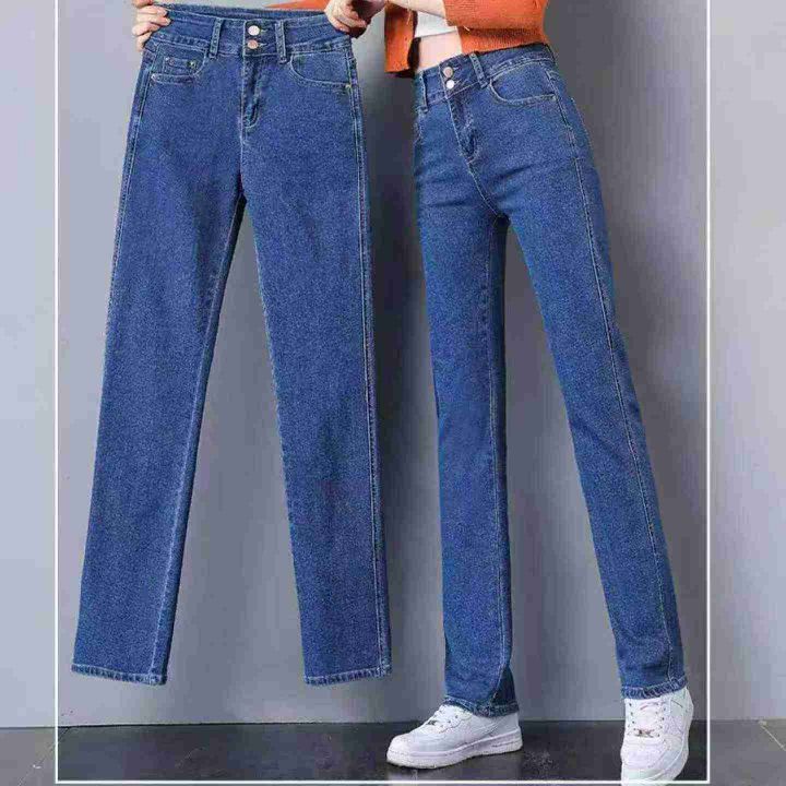 春季新款高腰宽松洗水棉牛仔直筒裤,独立包装带腰卡,...