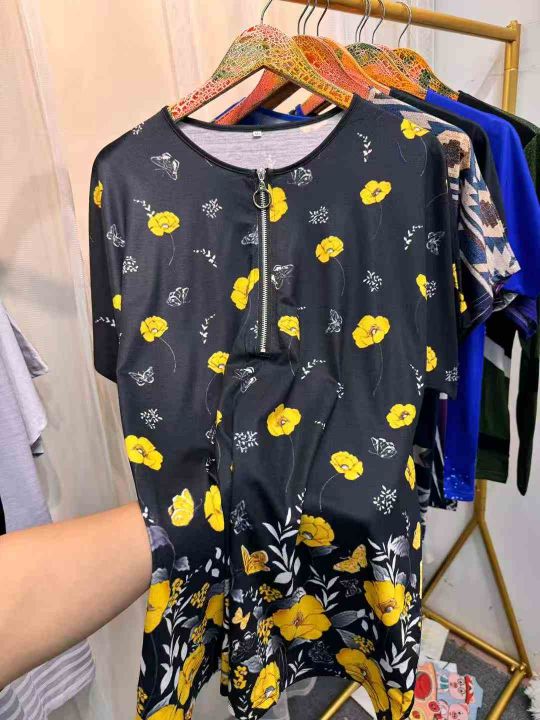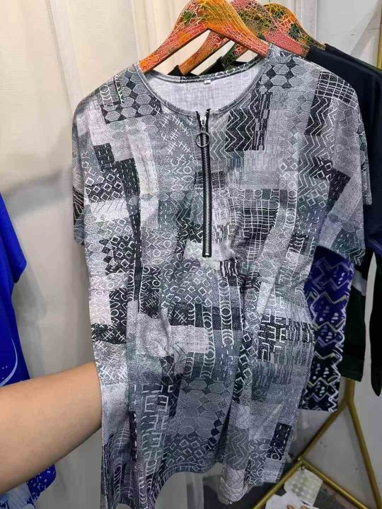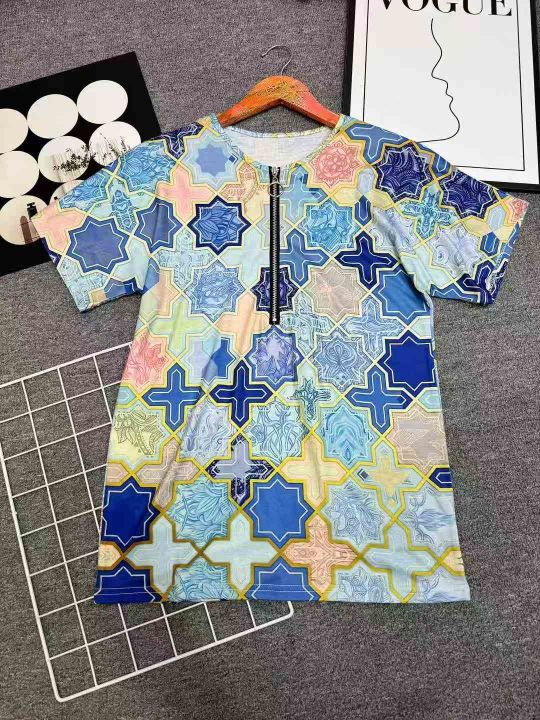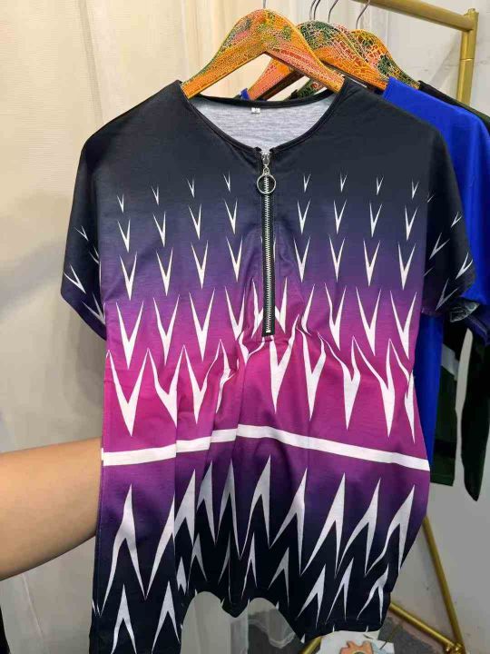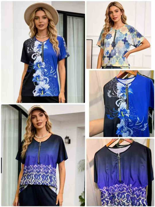 2026夏季欧美热销wish 独立站女民族风印花棉短袖v领拉链T恤上衣,独立包装,S-5XL,分货➕1,货号001#30
