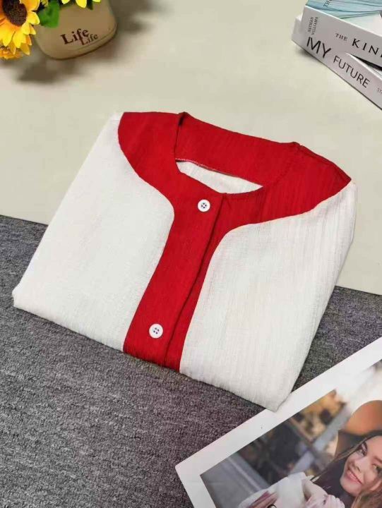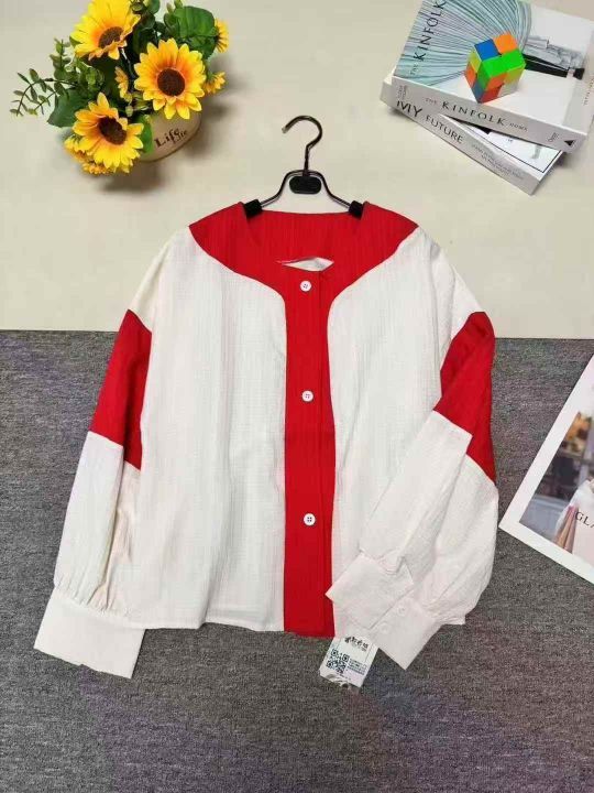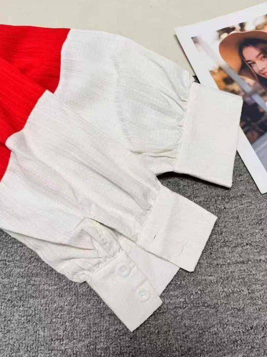 ❄️高级感别致红白撞色灯笼袖网红款雪纺衬衫,单款单色,品质好,有独立包装带吊牌,码数S- XL,数量380件左右,全清7.8元秒,分货➕1。