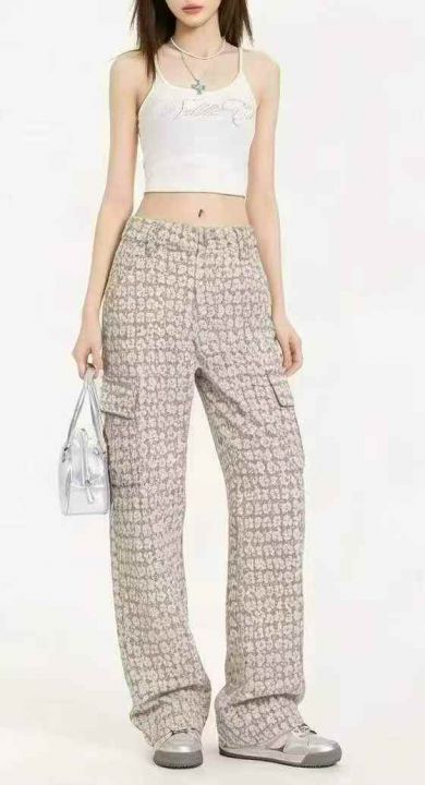 夏季新款设计感提花高腰显瘦气质百搭多袋直筒阔腿工装牛仔裤,独立包装带腰...