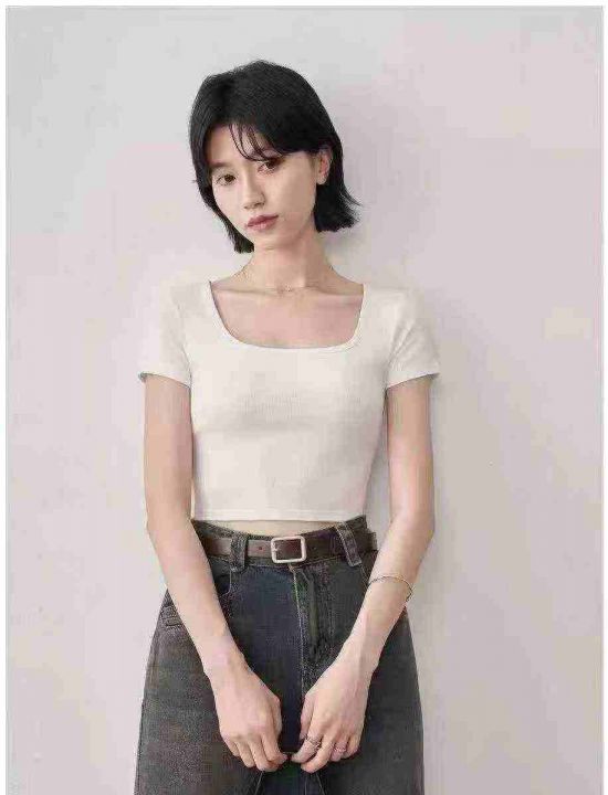 5000多件女款法式方领高腰露脐短T,尺码:XS~XL,面料软糯高弹力,全清价3.8元,分货加0.5元。