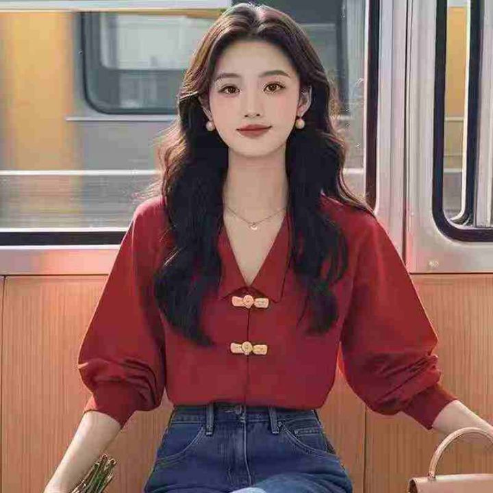 ❄️新中式国风领长袖衬衫上衣御姐炸街漂亮超好看小衫...