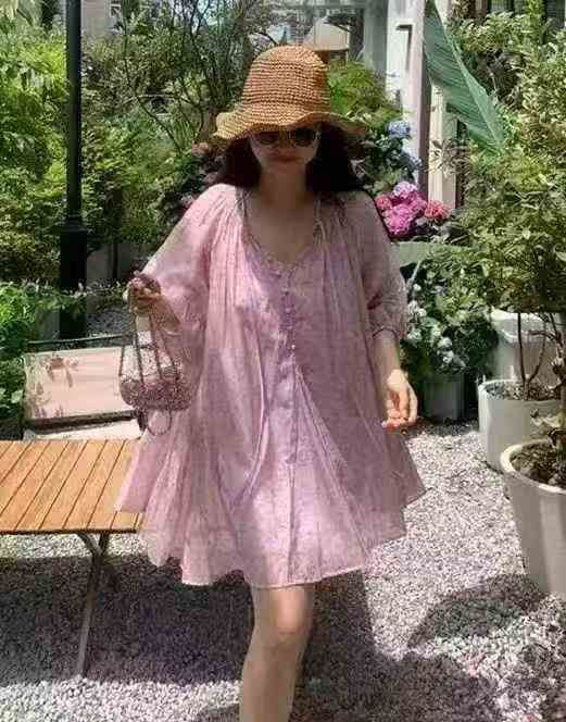 ❄️法式复古粉色碎花连衣裙女夏季甜美时尚海边度假宽松收腰显瘦短裙,单款单色,品质可入实体店,有独立包装带吊牌,码数S-XL,数量700件左右,全清8.8元秒,分货➕1