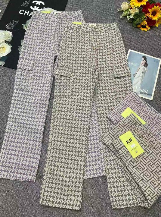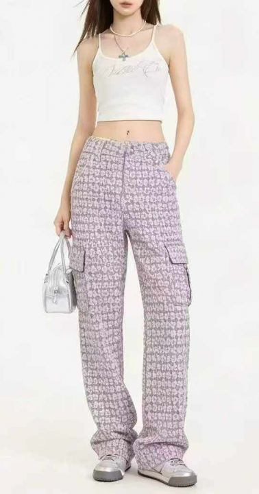 夏季新款设计感提花高腰显瘦气质百搭多袋直筒阔腿工装...