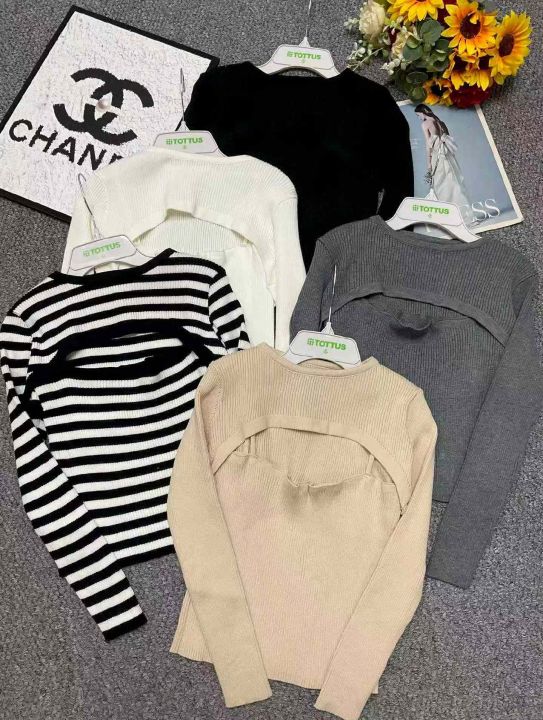 春季新款辣妹性感设计款针织毛衣2件套,独立包装,均码面料柔软舒适弹力大...