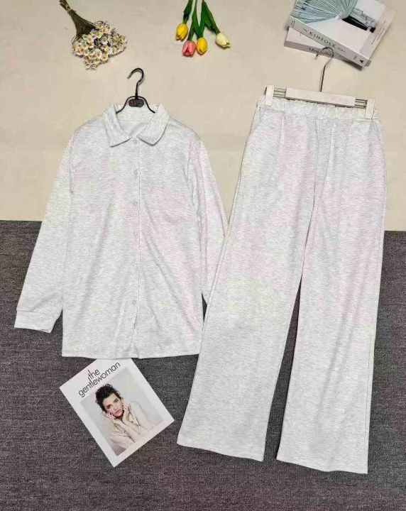 外贸跨境新品法式休闲慵懒时尚两件套家居服宽松通勤衬衫裤套装女 ,图片款,有加绒跟薄款,品质好,有独立包装,数量65套左右,全清9.9