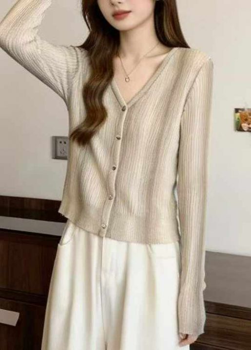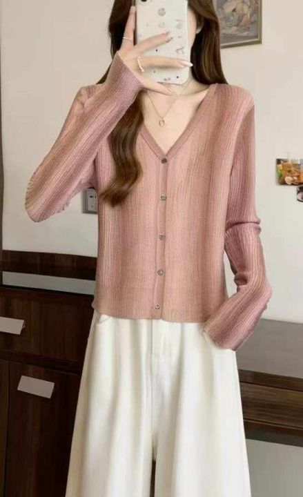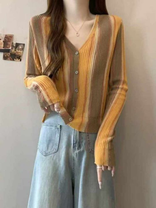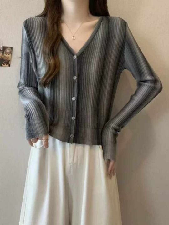 春季新款网红复古设计感渐变十个羊毛针织毛衣开衫,独...