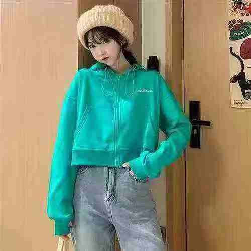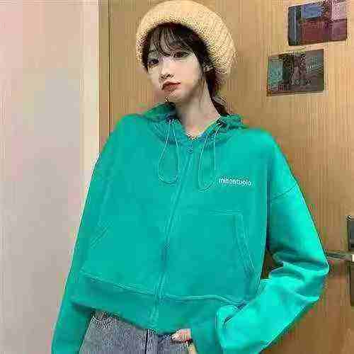 天猫在售款195件左右高品质春秋靓妹款棉质bf宽松连帽短款开衫卫衣外套,单款单色,M-XL,独立包装