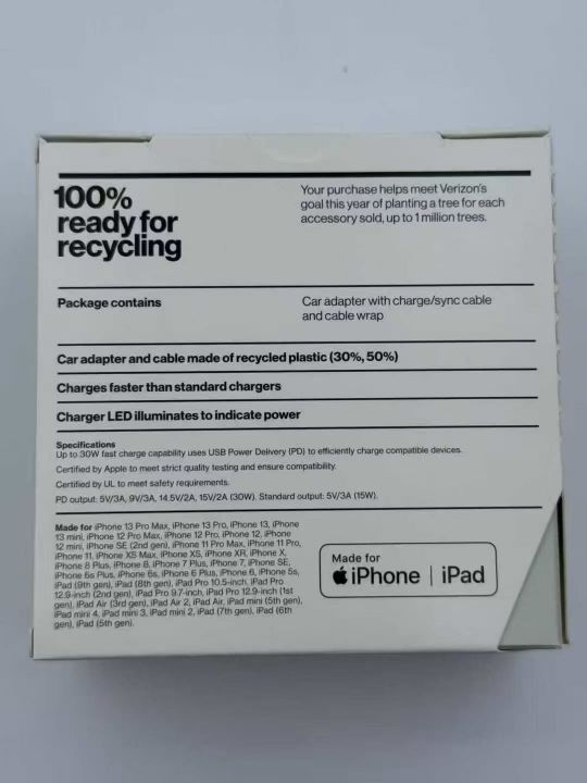 3000pcs,原装 美国verizon车载充电器,30w PD快充套装里面配的是双C口数据线2m,越南富士康代工,在美国零售价格44.99$美金/套!质量杠杠滴,有兴趣的来私聊!