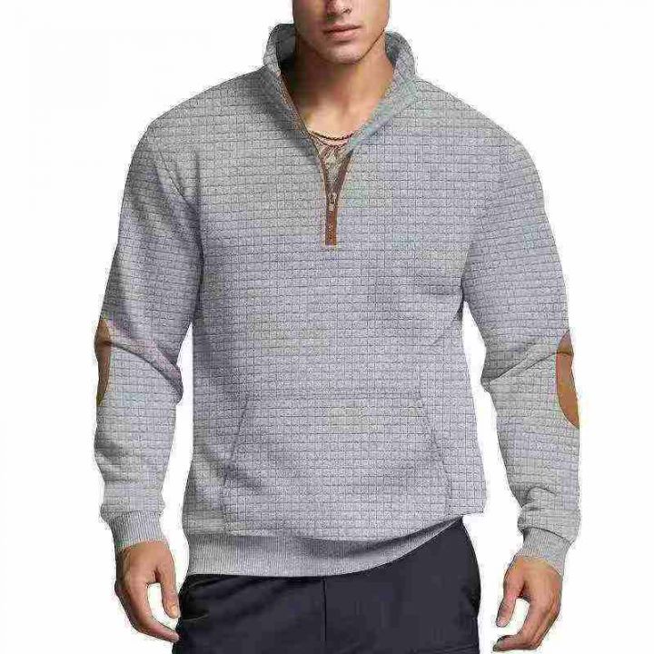 电商仓回收343件简约潮男百搭华夫格半拉链立领卫衣,码数M-3XL。灰色为主,版型宽松大气,低价清仓拼手速!有独立包装,分货➕0.5