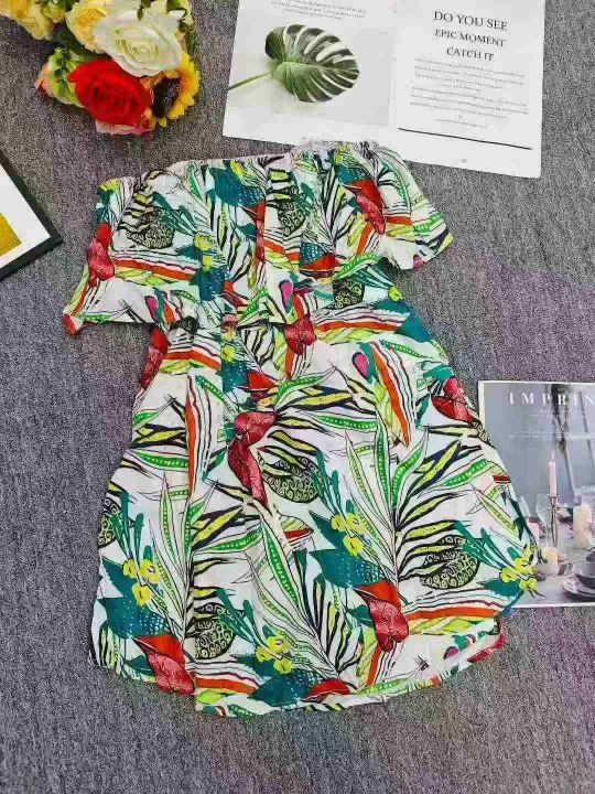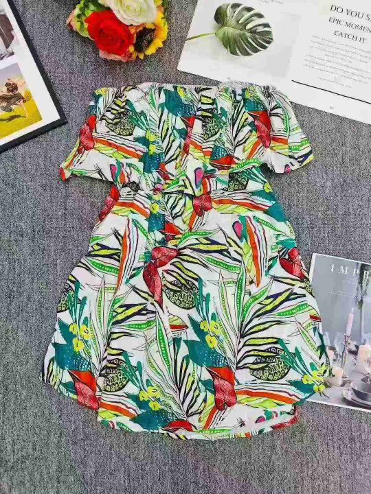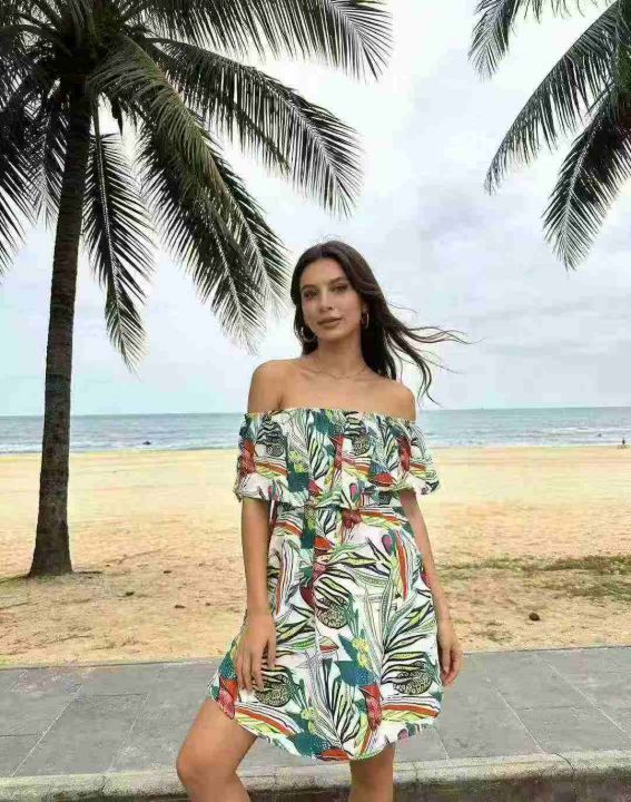 6.9清电商仓回收164件碎花度假风一字肩连衣裙,码数S-...