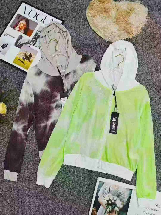 天猫仓回收4264件多巴胺扎染轻薄款针织衣休闲连帽拉链外套,均码可穿80-130斤。吊牌价688元,版型很好。质量款式非常好,全部独立包装带吊牌,分货➕1