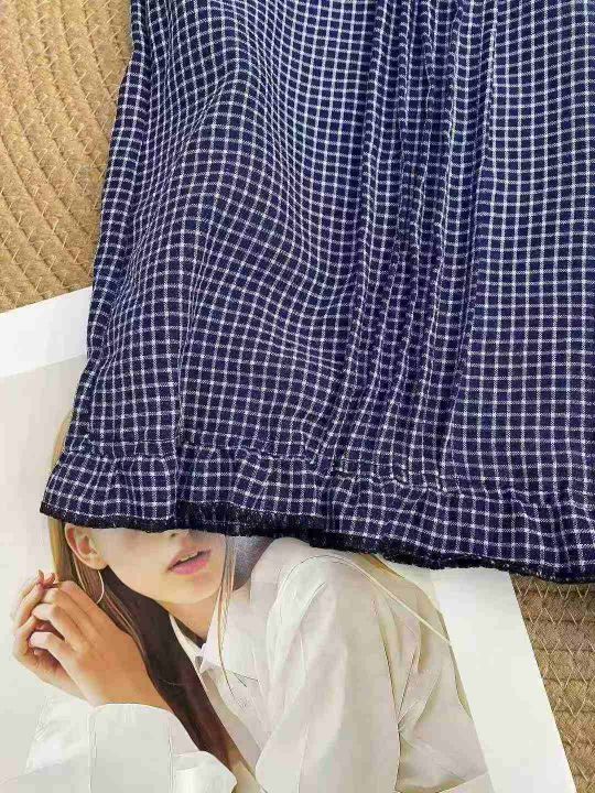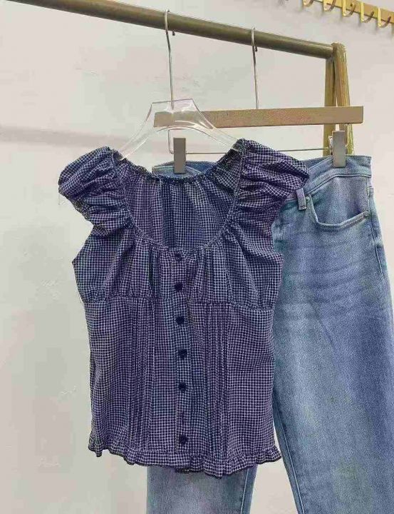 韩系复古格纹短袖衬衫187件7.9褶皱设计,荷叶边,码数...