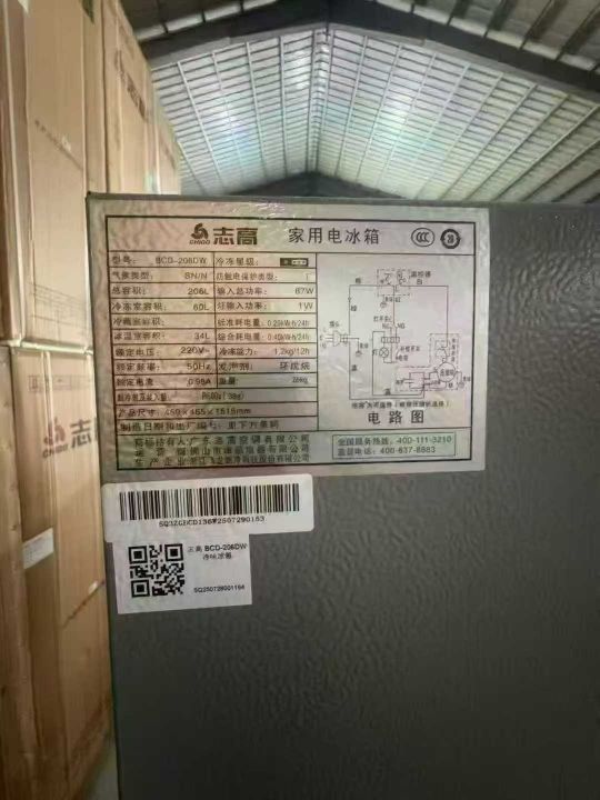 品牌志高三开门冰箱2500台,206升,5xx元一台。