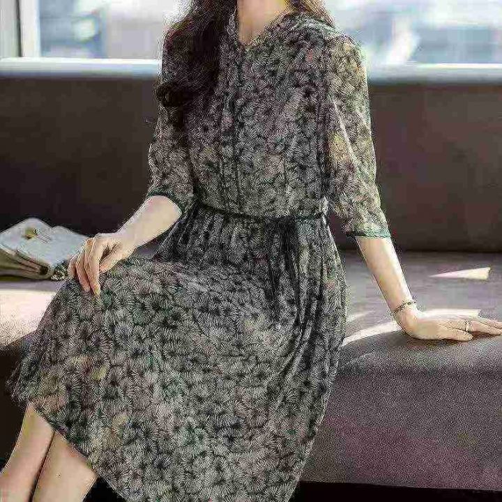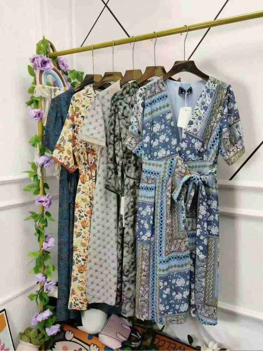 [福]复古碎花雪纺短袖连衣裙,总数量:1800条,码数:S-4XL码,独立包装,全清9.8分货➕1