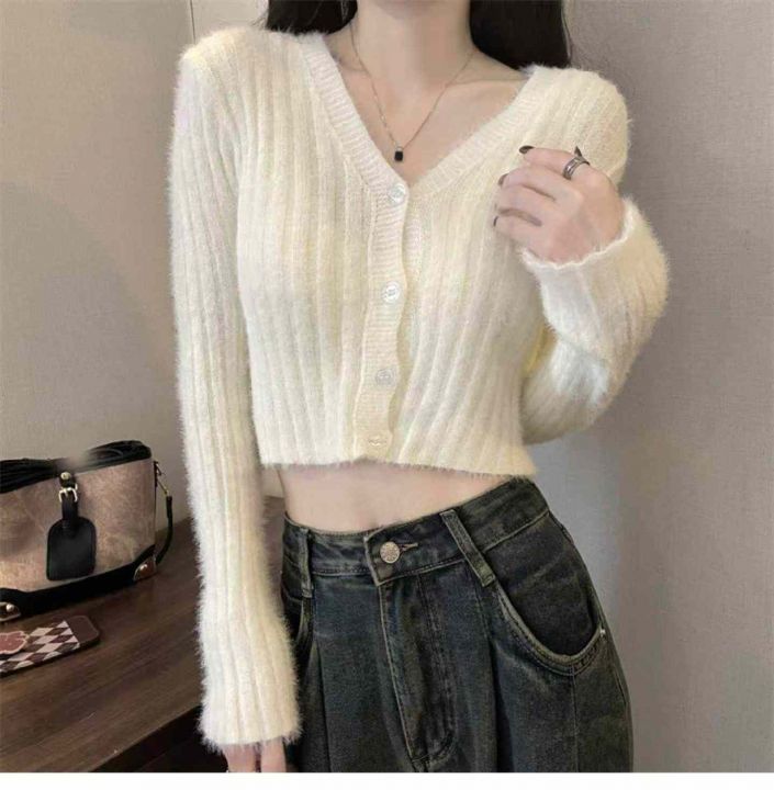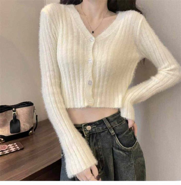 捡漏款,春季新款仿水貂毛V领单排扣针织毛衣开衫,独立包装,均码面料软糯舒适弹力大,50件左右,全清7.9元超低价秒杀!