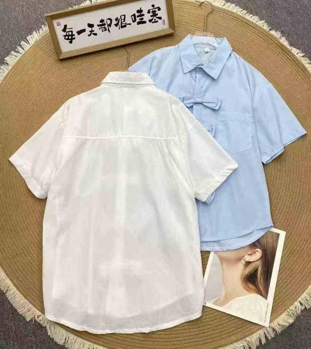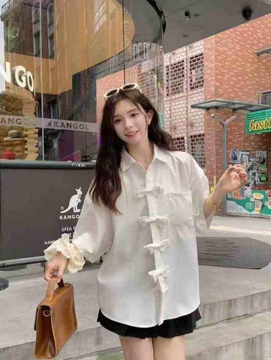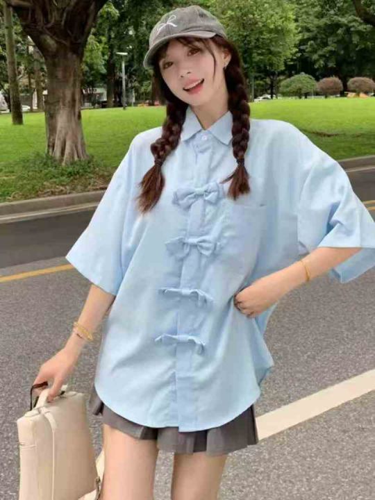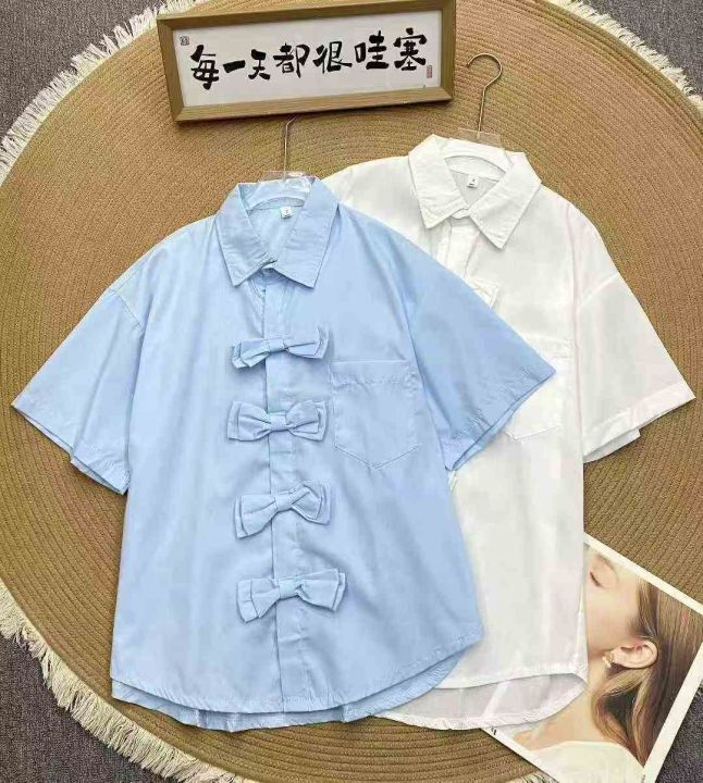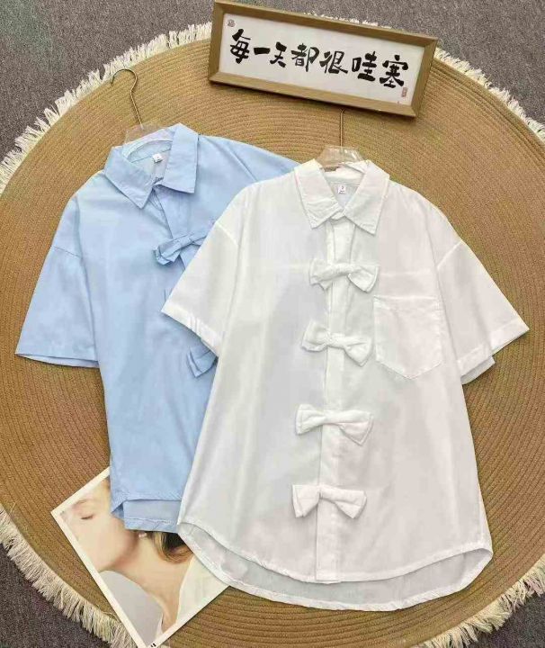 设计感休闲短袖衬衫304件7.8,蝴蝶结盘扣,宽松版,下...