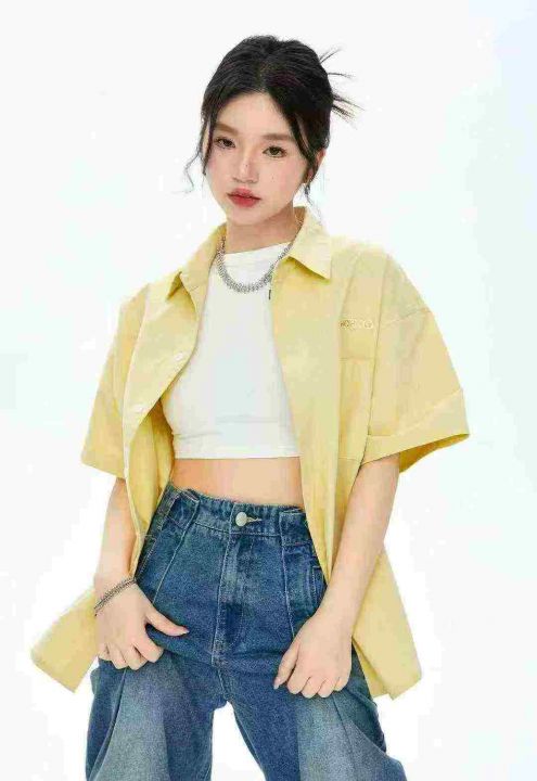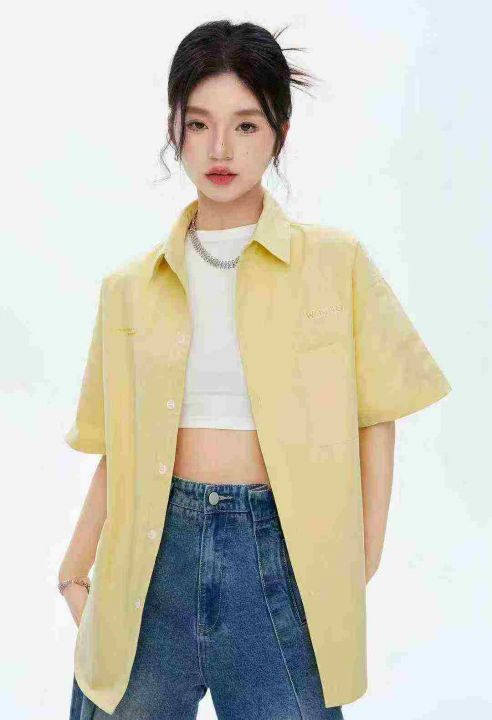 糖果色宽松短袖衬衫131件8.5,小Logo图案刺绣,码数1-...