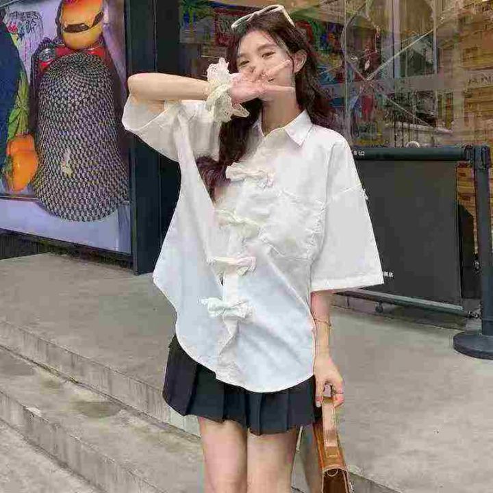 设计感休闲短袖衬衫304件7.8,蝴蝶结盘扣,宽松版,下...