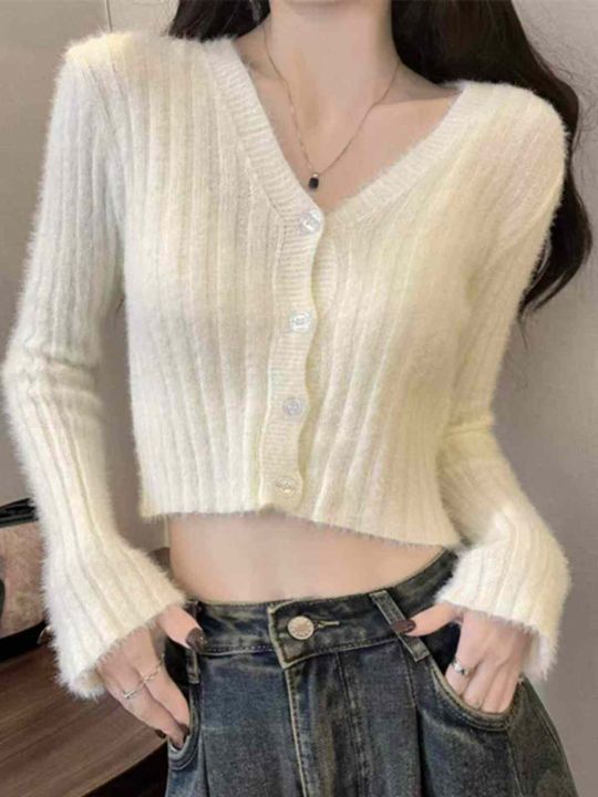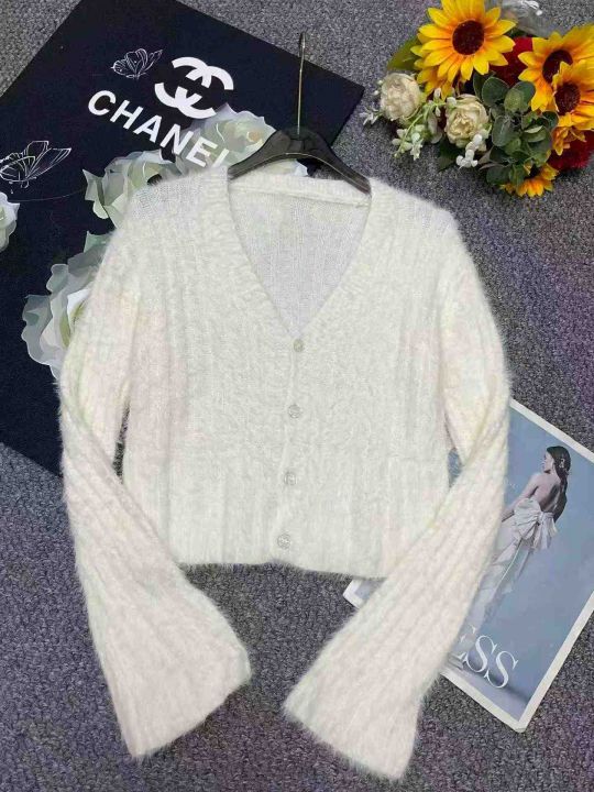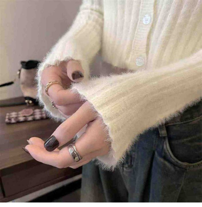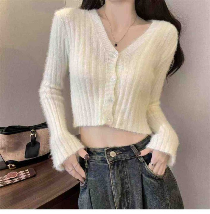 捡漏款,春季新款仿水貂毛V领单排扣针织毛衣开衫,独立包装,均码面料软糯舒适弹力大,50件左右,全清7.9元超低价秒杀!