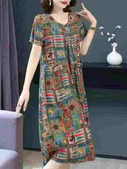 妈妈夏装连衣裙女夏季宽松裙子加肥加大码装,图片款图片色,图6图7为主,2到6码,独立包装货品干净,750件,4.9清,分货加1