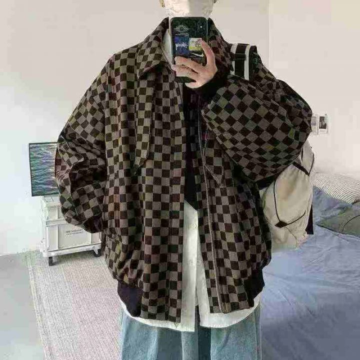 棋盘格外套男春秋季bf潮牌宽松炸街上衣日系复古休闲痞帅工装夹克大版型宽松外套,独立包装,码数M--XXL,总数量260左右,分货➕1