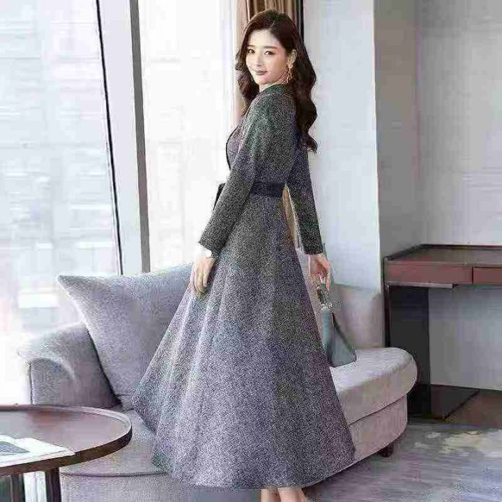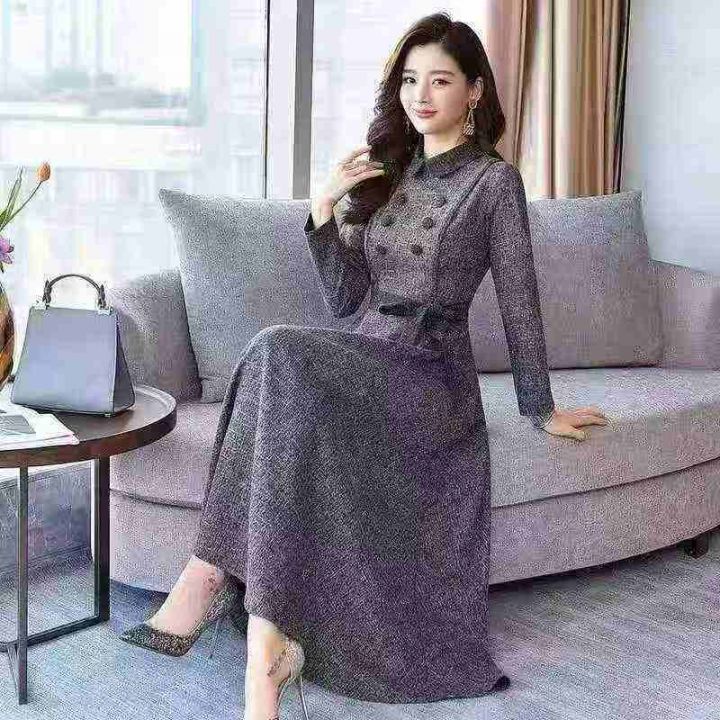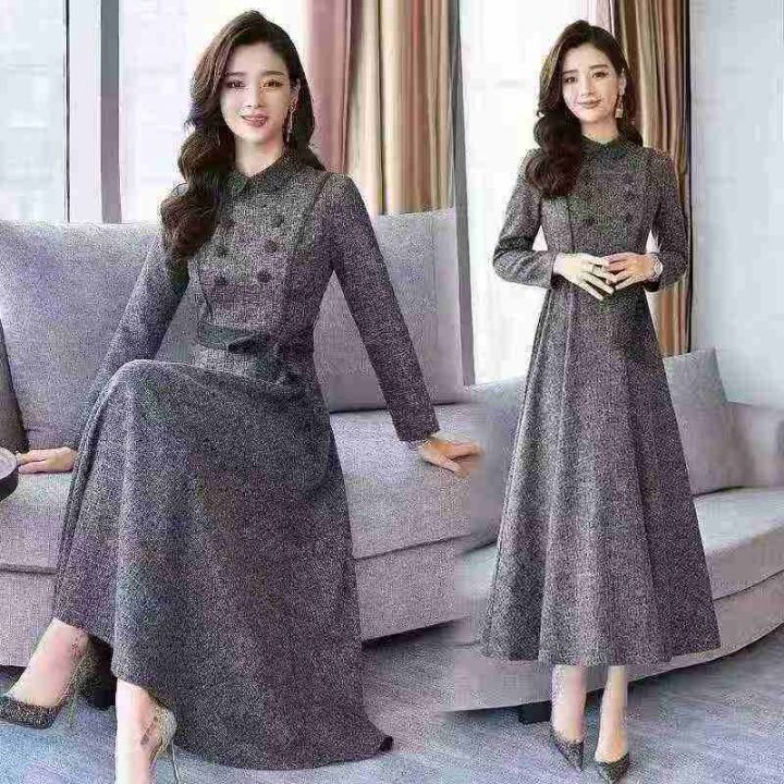 春秋法国小众法式复古连衣裙收腰名媛气质赫本风超长款过膝长裙冬