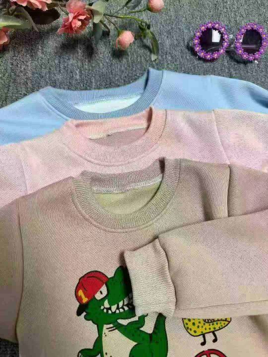 2000件左右秋冬男女童新款加绒保暖一体绒运动印花圆领卫衣。可穿3~8岁左右。一包4件。整款,面料厚实。亏本清。5.5秒杀