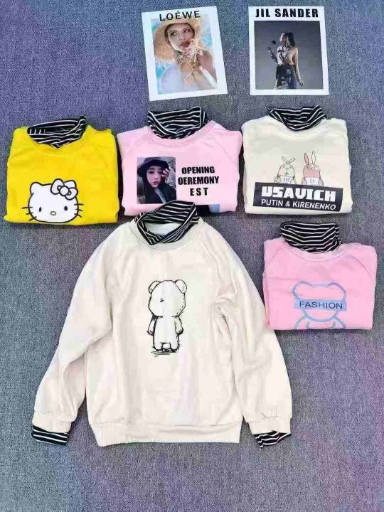 童装棉质卫衣,卡通动漫图案假俩件卫衣,内里加绒超柔的,5-12岁左右,五六个款式,总数350来件左右,独立包装