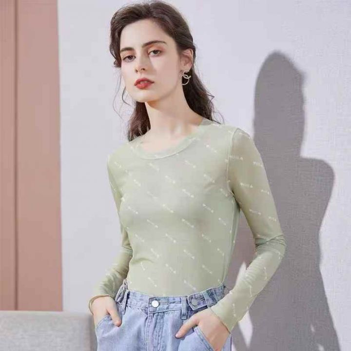 70件满印字母网纱打底衫女夏季薄款t恤圆领内搭长袖冰丝防晒衫,尺码s-2XL,...