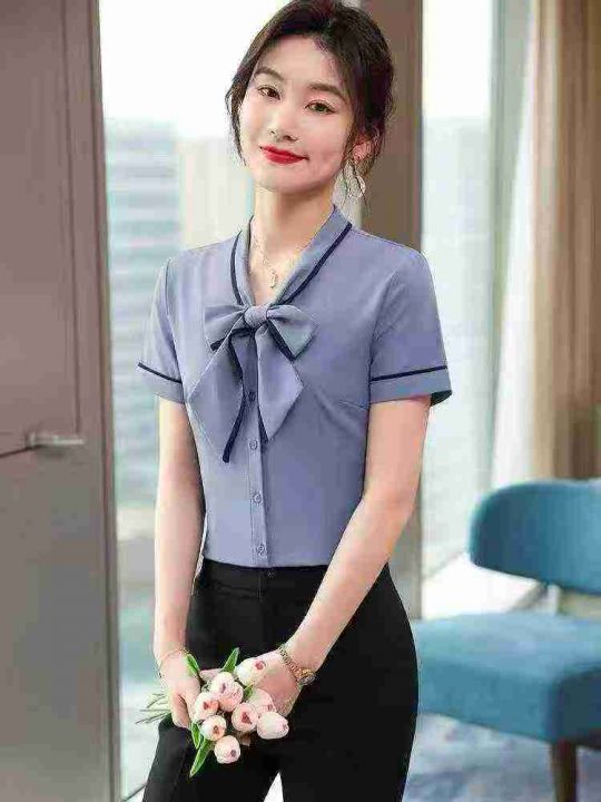 夏季款职业装雪纺衬衫女时尚洋气气质韩版垂感短袖衬衣,独立包装,S一3 xL码,图片款,1800件左右,全清4.9块分货加一