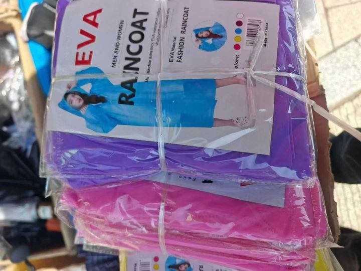 高端EVA100克雨衣3万件,100清货2.1元一件,支持分货300件起2.5元一件,码号大体重可穿到250斤,品质好,全部一等品,别拿差的比,级别差的比较远。
