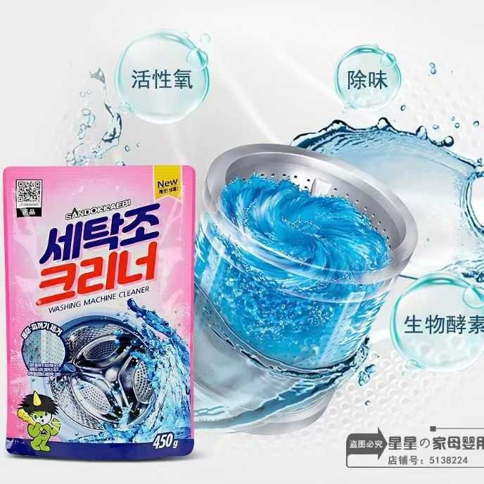 韩国进口山小怪洗衣机清洗清洁剂/家用杀菌滚筒波轮全自动去污除垢剂,约3000包,450克/包。