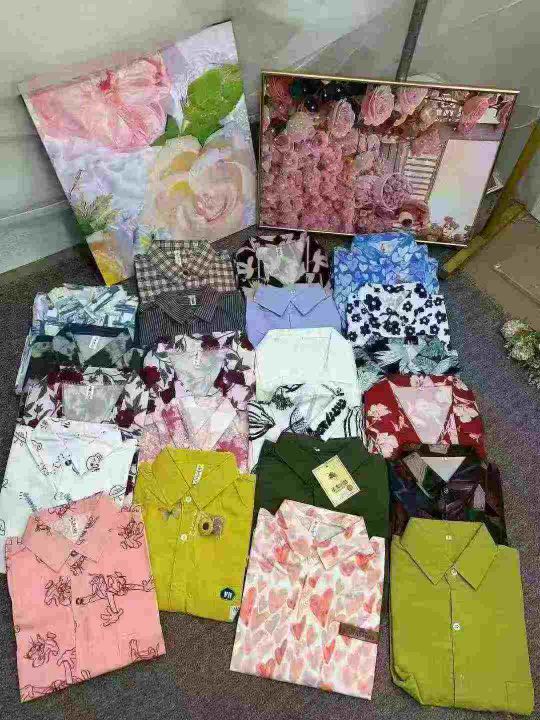 男女休闲短袖衬衫,小整杂,大概码数1到4码,有少量光版,可能会有个别长袖,不仅限图片款,还有部分款式没拍到,独立包装,货品干净,3000件左右,7.8清,分货加1