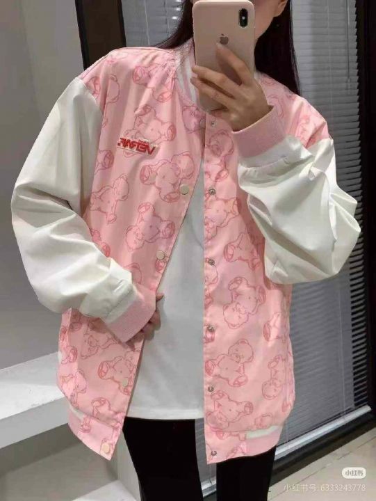韩版甜美减龄宽松遮肉百搭男女同款棒球服外套,[爱心]1500件左右,三个颜色,粉色为主,码数S-XL,穿70-160斤,浙江杭州货,原包装️无瑕疵,[666]实体店品质,(模特图仅供参考),分货加一