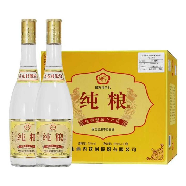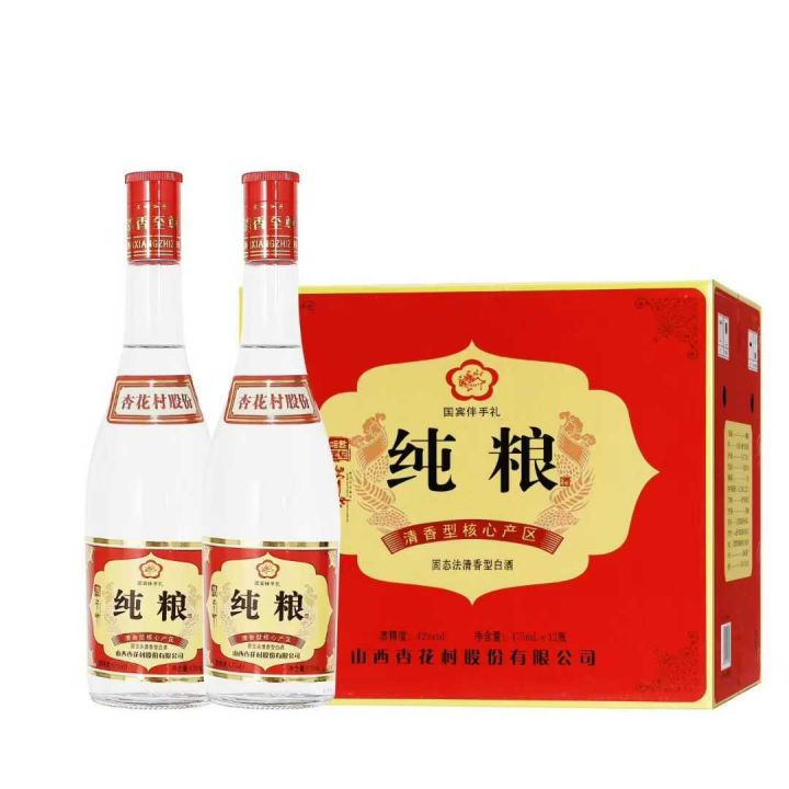 几十块钱一箱杏花村光瓶酒,纯粮酒,一箱12瓶,53度和42度,清香型,各有2000箱