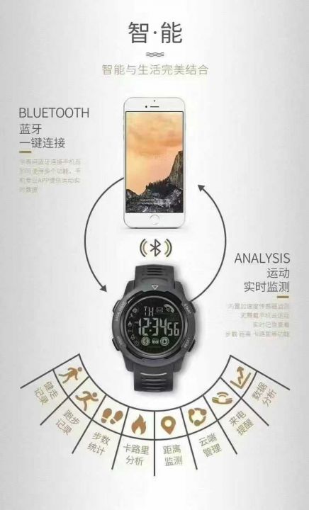 亚马逊外贸出口时尚休闲防水智能手表、户外智能运动手表 功能:App、蓝牙连接、EL亮屏(夜光表盘)、数据分析、摇一摇拍照、闹钟提醒、信息提醒、来电提醒、日期显示、距离统计、睡眠检测、实时计步	、云端管理	、运动模式、50米防水等等,需要私聊[握手]