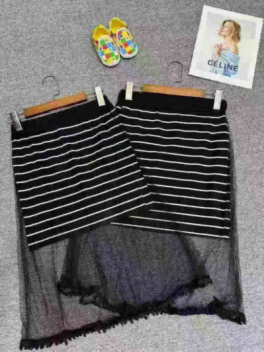 夏季休闲新款高腰松紧半身裙显瘦条纹网纱裙,独立包装...