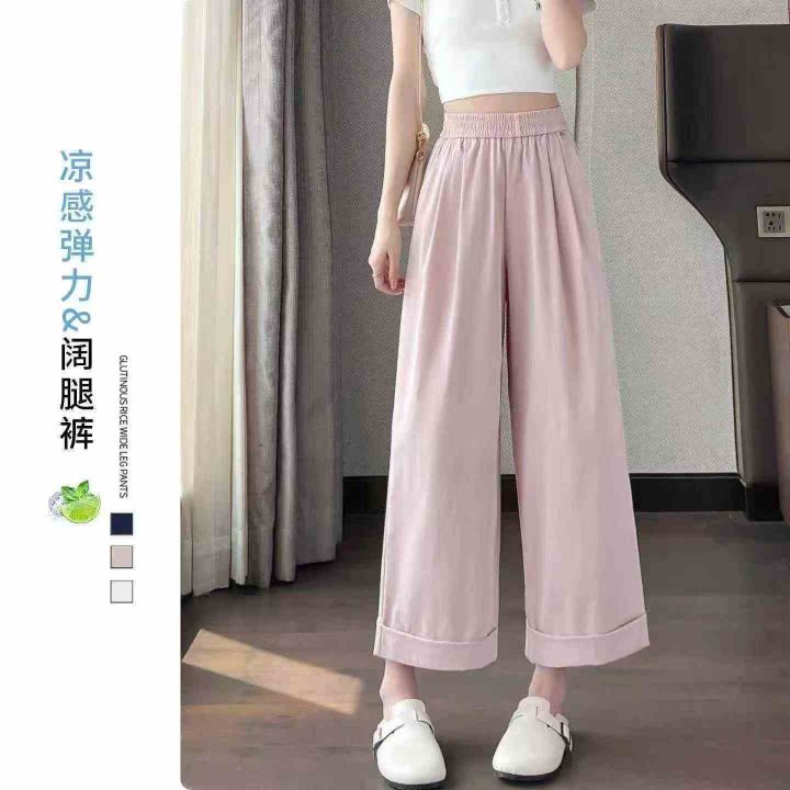 山本阔腿裤女夏季薄款高腰宽松卷边小个子九分直筒裤,...