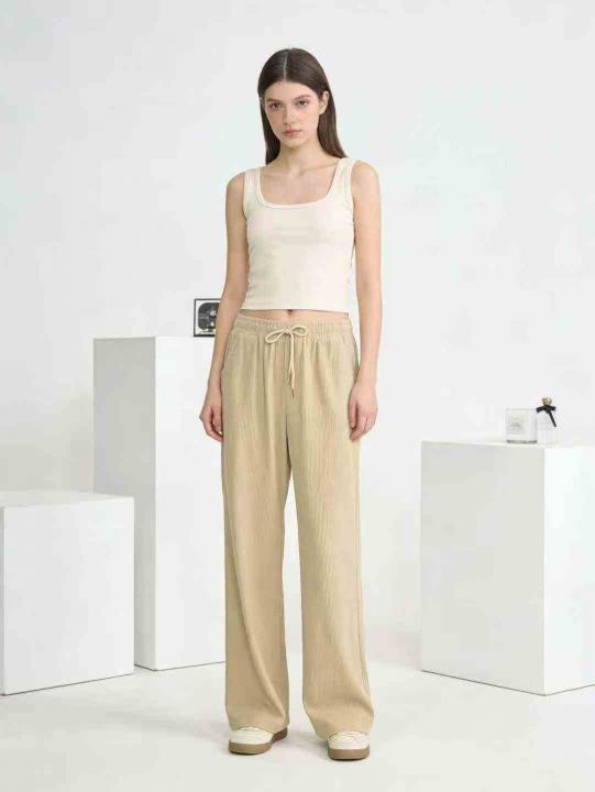 春季新品高腰松紧腰抽绳款直筒裤休闲裤宽松大码裤,独...