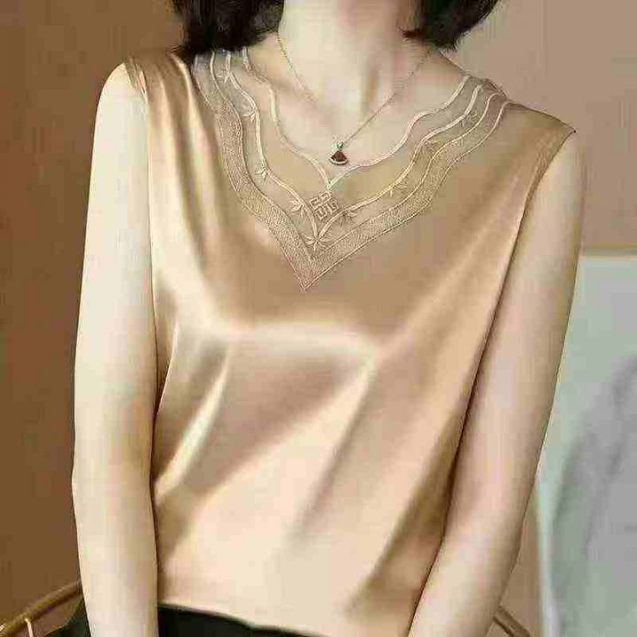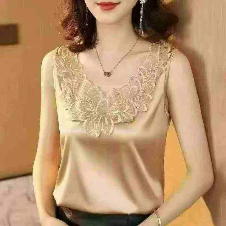 夏季高级感背心女装蕾丝百搭大码显瘦纯色绸缎吊带上衣...