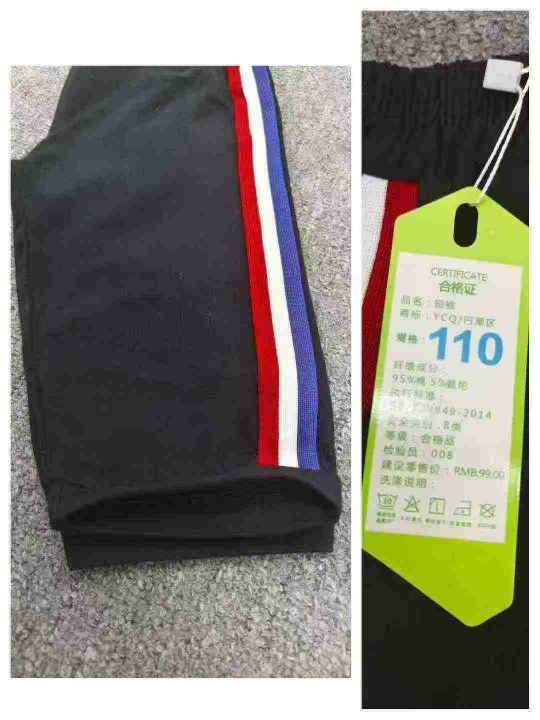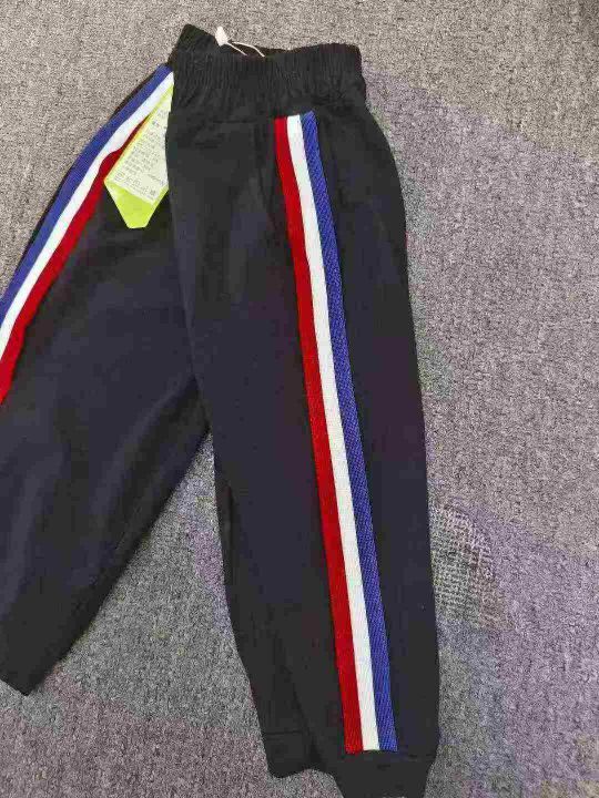 品牌男童女童三道杠条七分裤,数量800件左右,尺码110--160,独立包装带吊牌,货品干净整洁