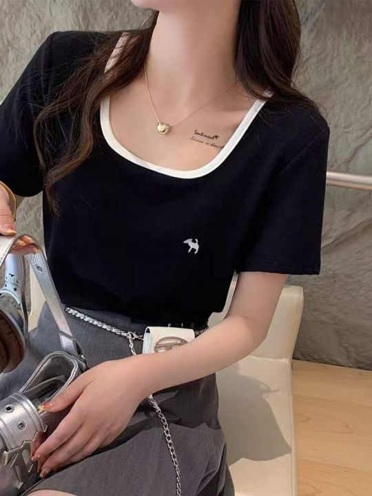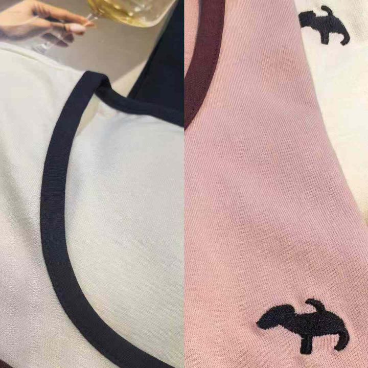 腾仓库捡漏:5.8一件品牌纯棉撞色刺绣圆领修身显瘦短...