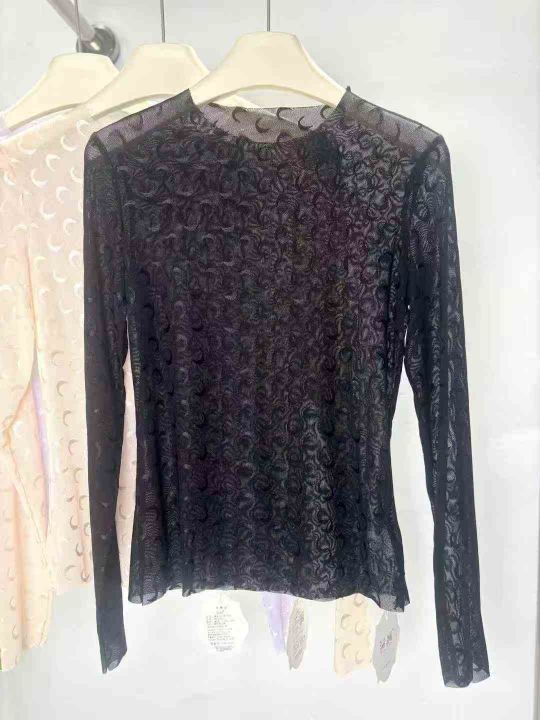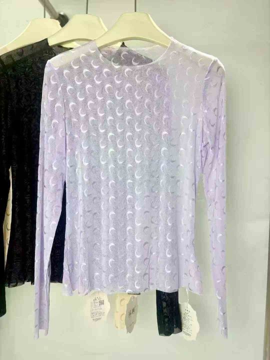 175件月亮网纱打底衫女夏季薄款圆领长袖t恤上衣冰丝内...