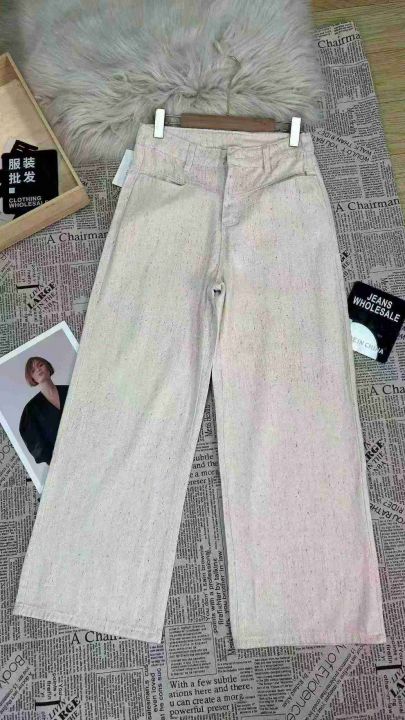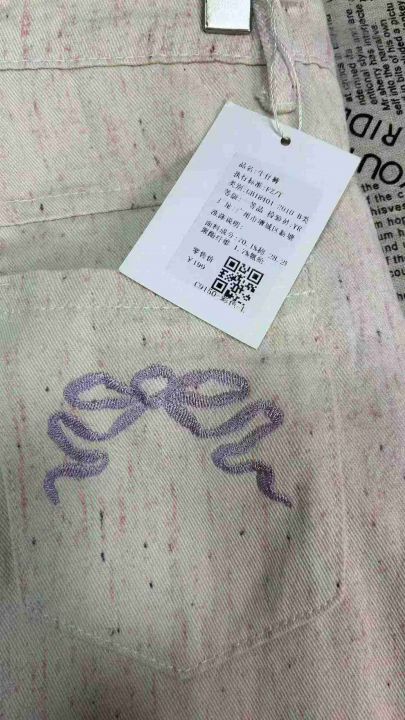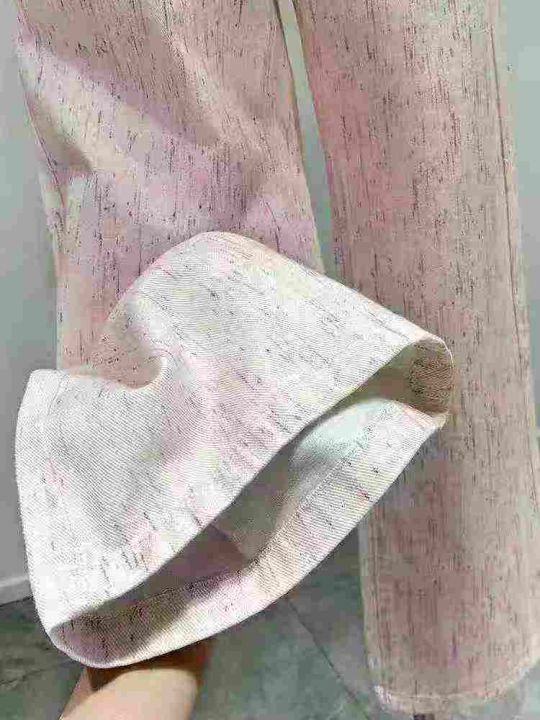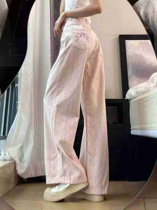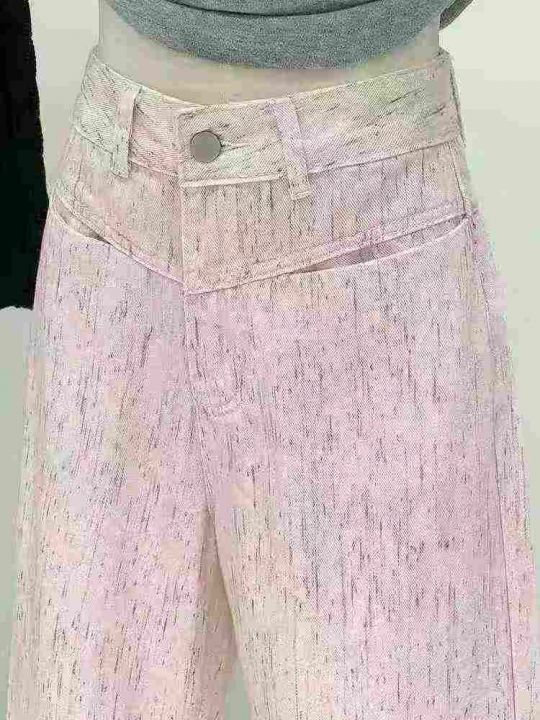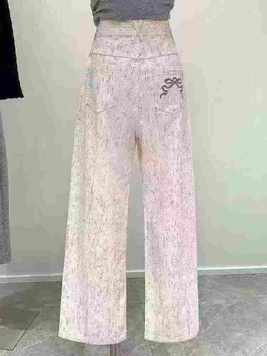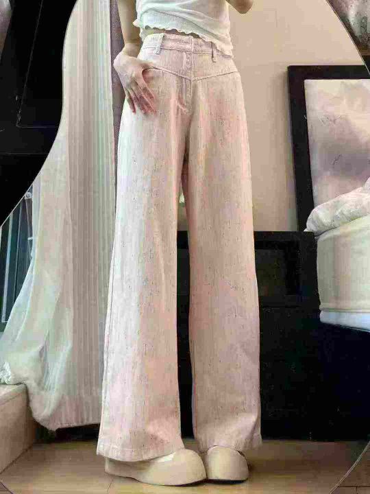 设计感彩墨宽松直筒阔腿牛仔裤 春季新款 藕粉浅色高腰显瘦垂感阔腿裤,数量323条,尺寸S-XL码,工厂新货,原独立包装带吊牌,低价批发12.9秒杀